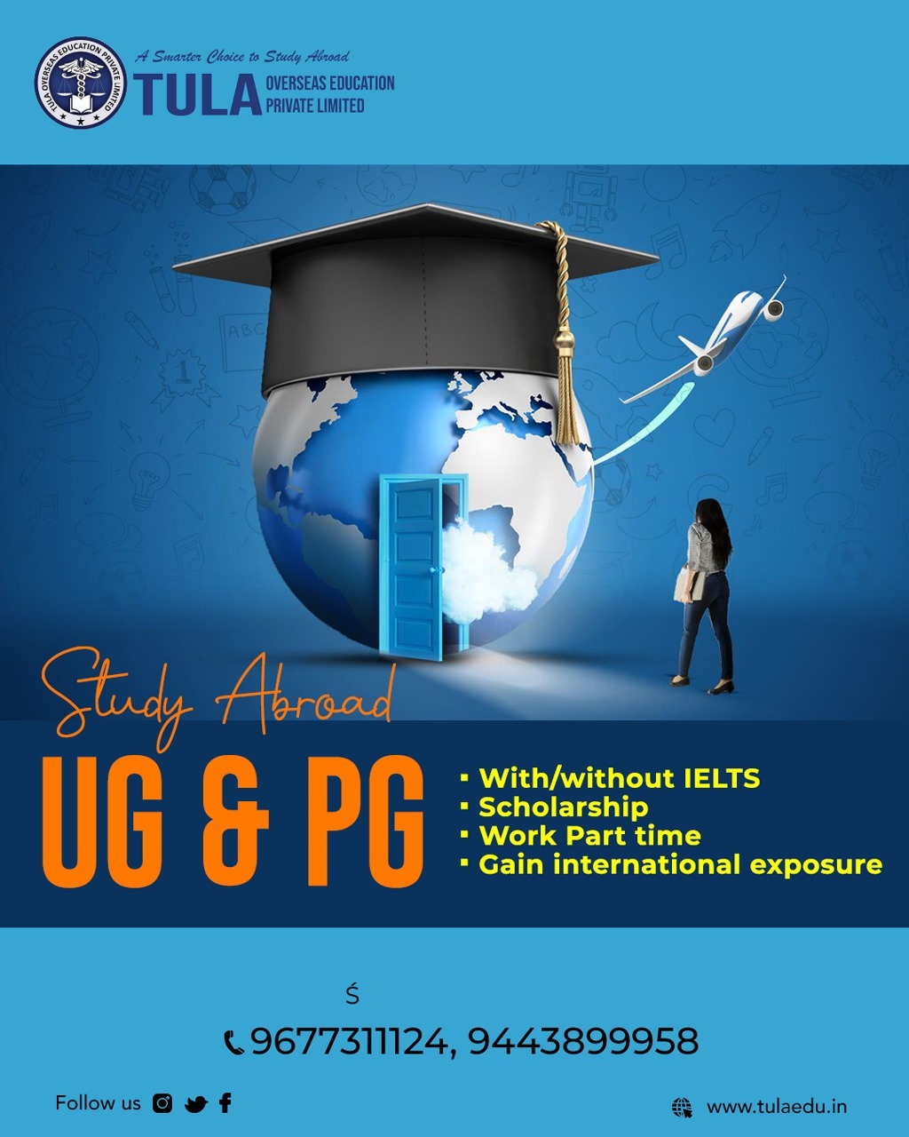 Study Abroad UG and PG with Tula Overseas Education Dreaming of an international degree? Study Abroad UG and PG with Tula Overseas Education and unlock global opportunities for your academic and professional future. Studying abroad offers world-class education, international exposure, and better career prospects across top destinations like the UK, Europe, Asia, and other leading countries.