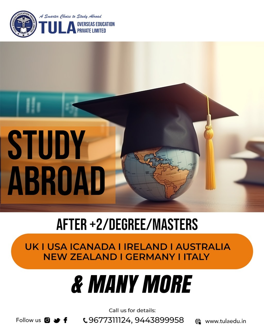 Study Abroad with Tula Overseas Education Planning to study abroad? Tula Overseas Education is your reliable overseas education consultant, helping students achieve their dream of international education with expert guidance and complete support. From choosing the right country and university to securing admissions and visa approvals, we make your study abroad journey smooth, transparent, and successful.